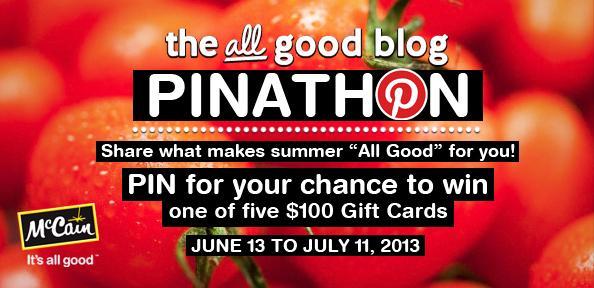 To celebrate the coming of summer, McCain is hosting an All Good Pinathon on Pinterest and awarding $100 each to the 5 pinners whose boards inspire them the most.