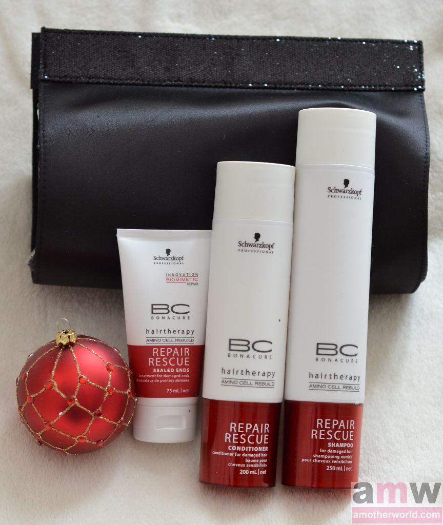 One lucky reader is going to receive Schwarzkopf Professional Bonacure Holiday Set which includes the Repair Rescue Shampoo, Conditioner and Sealed Ends in a pretty black bag. You can use the bag for travel or as a make-up bag. This is a great gift idea for her this holiday season!