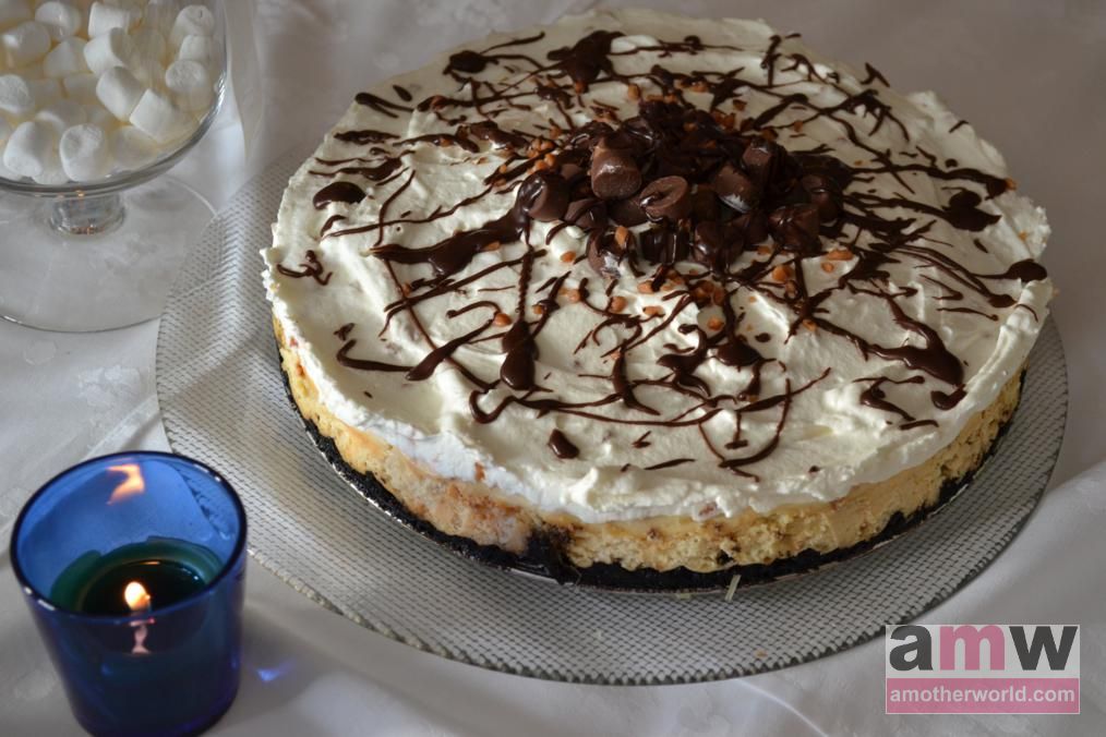 This cheesecake is to die for. It combines my favourite candy – chocolate caramel and Skor.