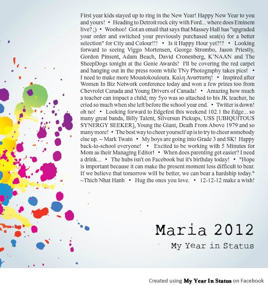 But in the meantime,  I want to sit back and reflect on the past year. And with the help of some Facebook applications, I created a Year in Photos and a Year in Status: