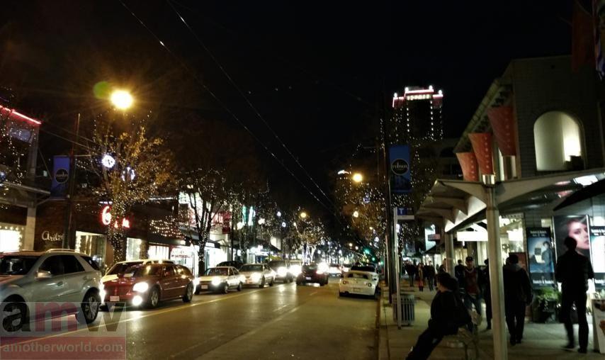 Later, we took a stroll along Robson Street, one of the first streets in Vancouver, and was named in honour of John Robson, Premier of British Columbia from 1889-1892. Today, it is Vancouver’s most famous shopping street and a well-established fashion district. I especially loved seeing various parts of the city at night; with Christmas season, the lit trees and decorative lights are so festive!